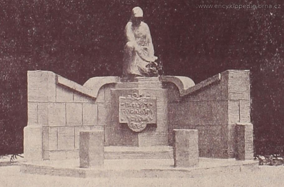 Signováno vpravo dole „Mach“. Zdivo provedl zednický mistr Jan Hroz z Líšně. Kámen přivezl a daroval rolník František Šumbera, cihly darovala cihelna Belcredi, zábradlí dodala zámečnická dílna Františka Zahradníka z Líšně. Bronzové tabule s písmem vyrobila umělecká dílna František Anýž z Prahy.