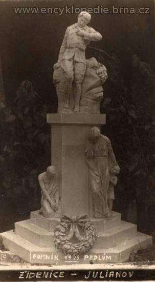 Pomník byl několikrát upravován a doplňován, naposled jej restaurovali a doplnili D. a J. Markovi v roce 1992. Již v roce 1915 navrhl student c. k. akademie umění v Praze Martin Polák pomník padlých vojínů židenických z hořického pískovce s postavami dívky ve slováckém kroji a padlého vojína.