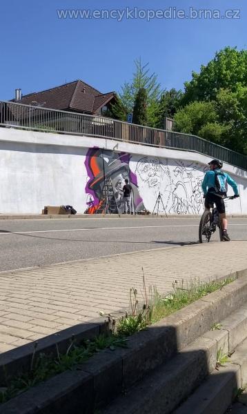 barevně provedené graffiti na kamenné opěrné zdi