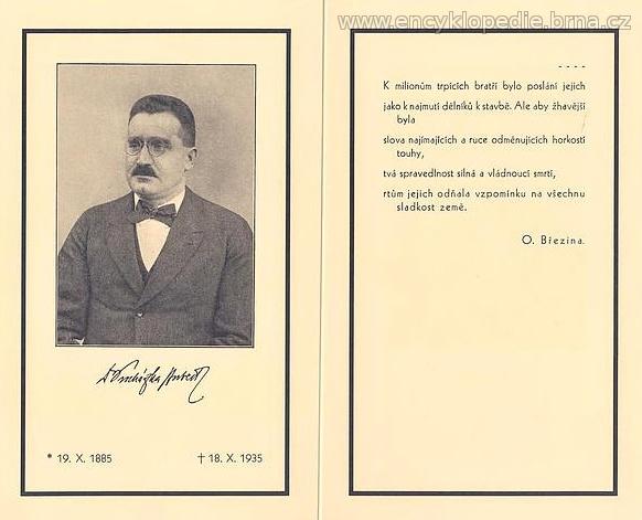 * 19.10.1885 Kobeřice (okres Vyškov) † 18.10.1935 Brno