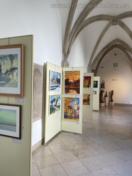 Výstava Uměleckého spolku Parnas - v pozadí obrazy Dušana Chaloupky. Foto LucKub, září 2025.
