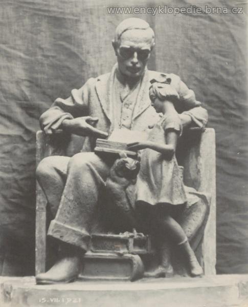 Model sousoší učitele s děvčetem. Sousoší bylo vytvořeno pro nároží školy na Kounicově třídě, rok 1921. Model byl vytvořen ze sádry v třetinové velikosti skutečného sousoší. Jeho rozměry: 50 x 33,5 x 33,3 cm. Zdroj: AMB, T2, inv. č. 20-1/02.
