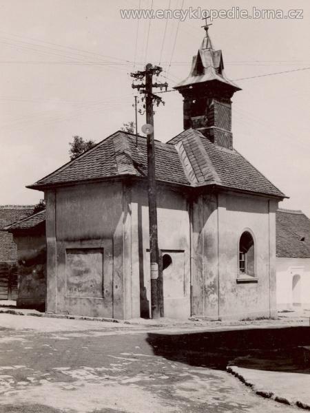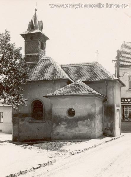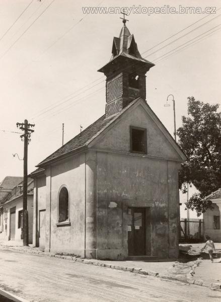 Nejstarší zmínka o kapli pochází z roku 1657, kdy byla rozšířena řádem Jezuitů. Stála na horním konci tehdejší vsi. Při mohutném požáru, který ves postihl roku 1813, byla kaple poškozena. Nově postavena a vysvěcena byla v roce 1821. Přestože kaple „přežila“ obě světové války, zbořena byla z důvodu rozšíření křižovatky ulic Nálepkovy a Lelkovy dne 15. května 1958.