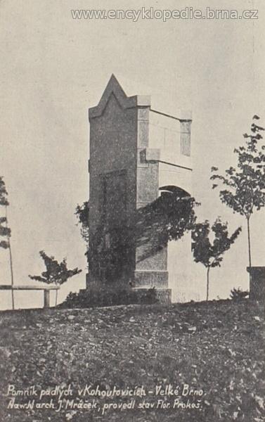 Už v roce 1933 byl pomník poškozen do té míry, že se začalo uvažovat o jeho opravě. Ze zápisků místního výboru obce ze dne 29. září 1937 však vyplynulo, že by oprava nebyla možná a proto bylo rozhodnuto starý pomník odstranit a na jeho místě vybudovat pomník nový, k čemuž ale nikdy nedošlo. Z původního pomníku se zachovala pouze pamětní deska, která byla druhotně přemístěna ke vchodu do budovy radnice MČ Brno-Kohoutovice.