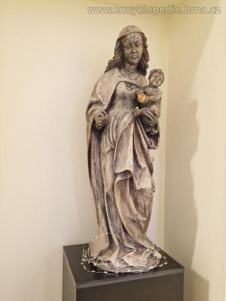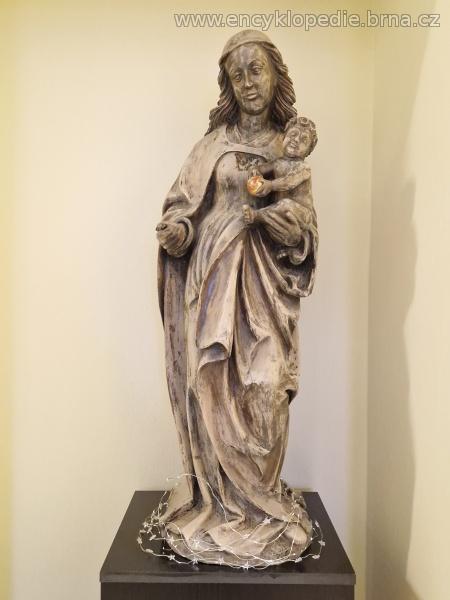 dřevěná socha Panny Marie s dítětem Ježíšem na levé ruce