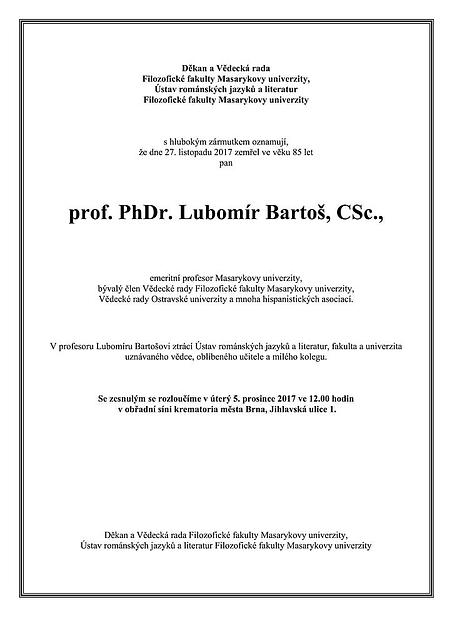 Zemřel prof. PhDr. Lubomír Bartoš, CSc. na webu FF OU