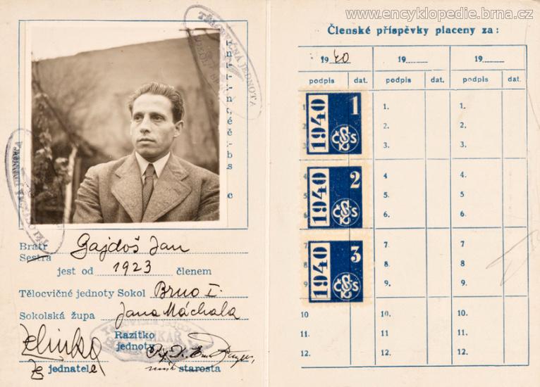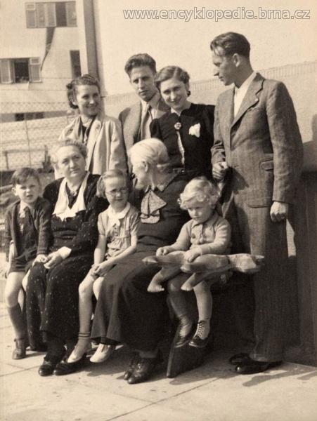Poslední rodinná fotografie z r. 1939. Snímek je pořízen po přestěhování ze zabraného Šumperka do Brna. Popis osob je od J. Gajdošové: zadní řada zleva J. Gajdošová, J. Gajdoš, sestra J. Gajdošové Vlasta, provd. Kalivodová (švagr fotografoval), bratr J. Gajdoše Miloš. Dole uprostřed je matka J. Gajdošové a teta, dvě děti Vlastiny a Jiří Gajdoš (syn J. Gajdoše). Zdroj: MuMB, inv. č. 153222.