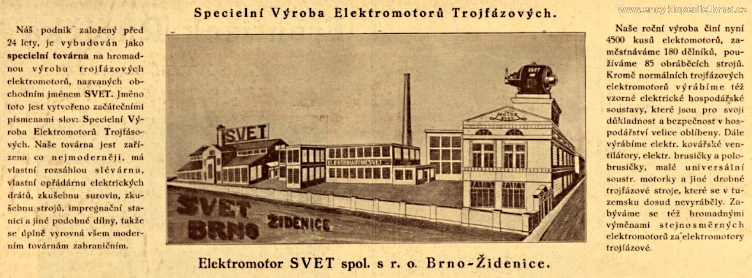 V roce 1921 se z firmy Elektromotor SVET vyvinul velký podnik Moravské elektrotechnické závody, známé pod zkratkou MEZ. V roce 1936 měla firma již 314 zaměstnanců.