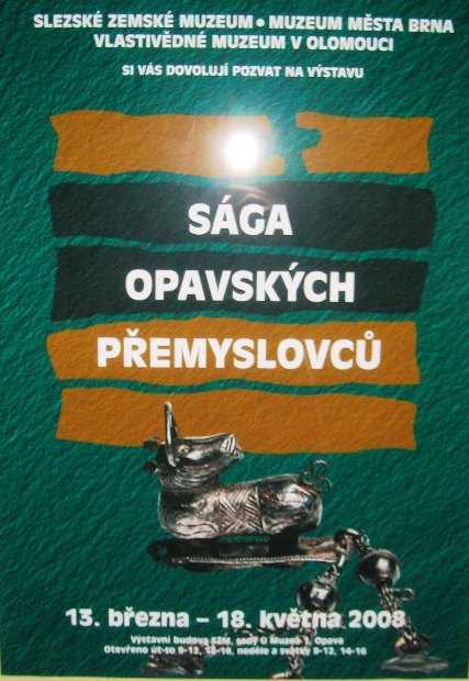 Výstava Sága moravských Přemyslovců doplněná výstavou další - Sága opavských Přemyslovců, která rozšířila tematické zaměření o 14. a 15. století s řadou krásných artefaktů, se konala také ve výstavní budově Slezského zemského muzea v Opavě v termínu od 13. března do 18. května 2008.